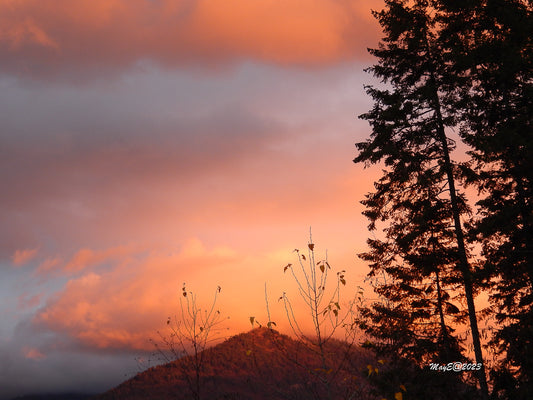 Nature Landscape Photographic Art Poster - Pink Sky Purple Sky Mountain - with Frame