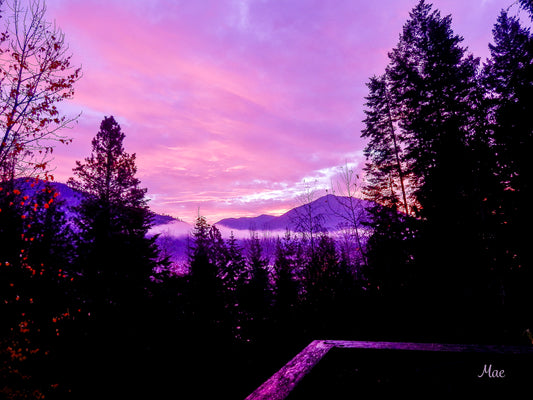 Nature Landscape Photographic Art Poster - Pink Sky Purple Sky Mountain