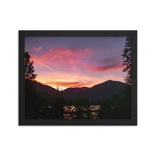 Nature Landscape Photographic Art Poster - Pink Orange Mountain Lake - with Frame