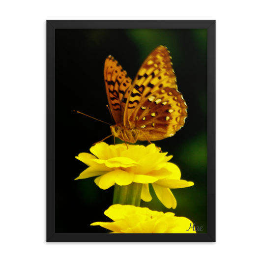 Nature Photographic Art Poster - Butterfly on Yellow Marigold - with Frame