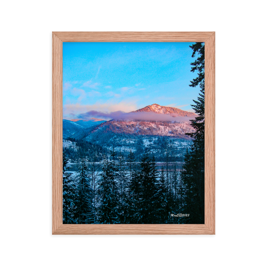 Nature Photographic Art Poster - Turquoise Sky over Pink Mountain Top - Poster with Frame