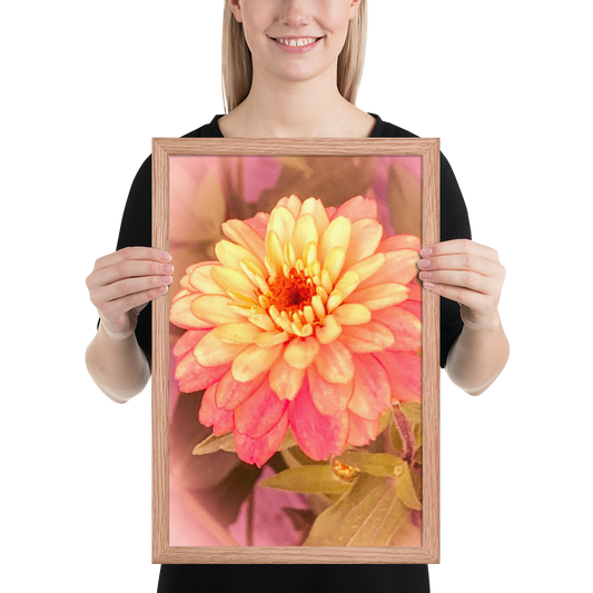 Nature Flower Photographic Art Poster - Pink and Yellow Zinnia - with Frame