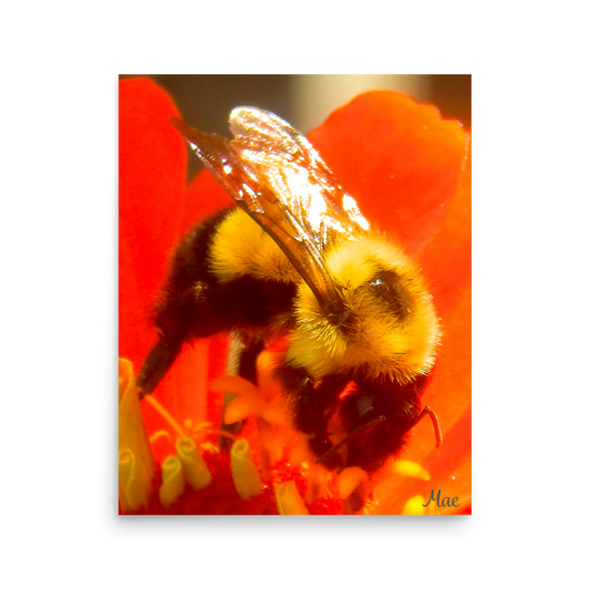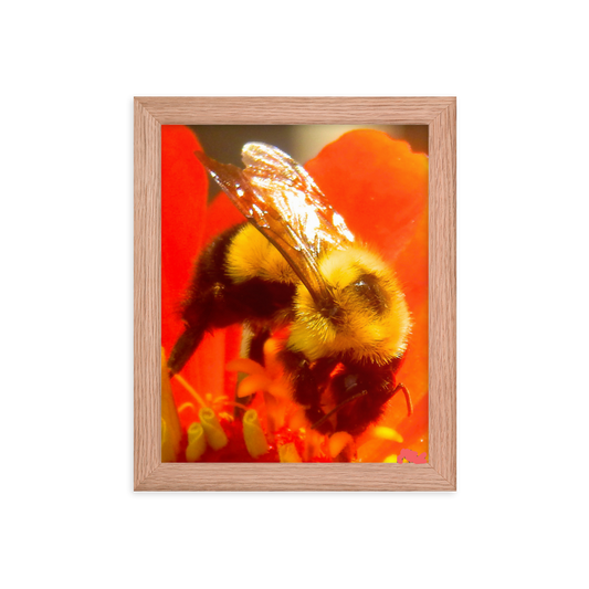 Nature Photographic Art Poster - Bee on Red Flower - with Frame