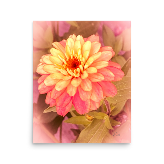 Nature Flower Photographic Art Poster - Pink and Yellow Zinnia