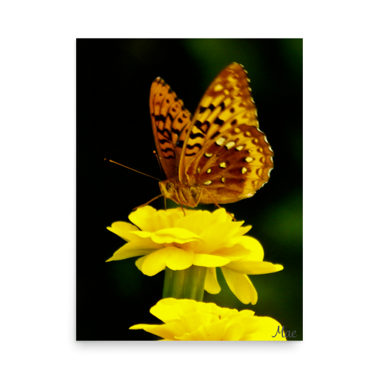 Nature Photographic Art Poster - Butterfly on Yellow Marigold