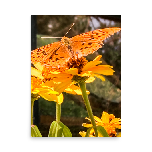 Photographic Art Poster - Butterfly Queen on Yellow Marigold Throne