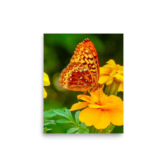 Photographic Art Poster - Orange Butterfly on Yellow Marigold